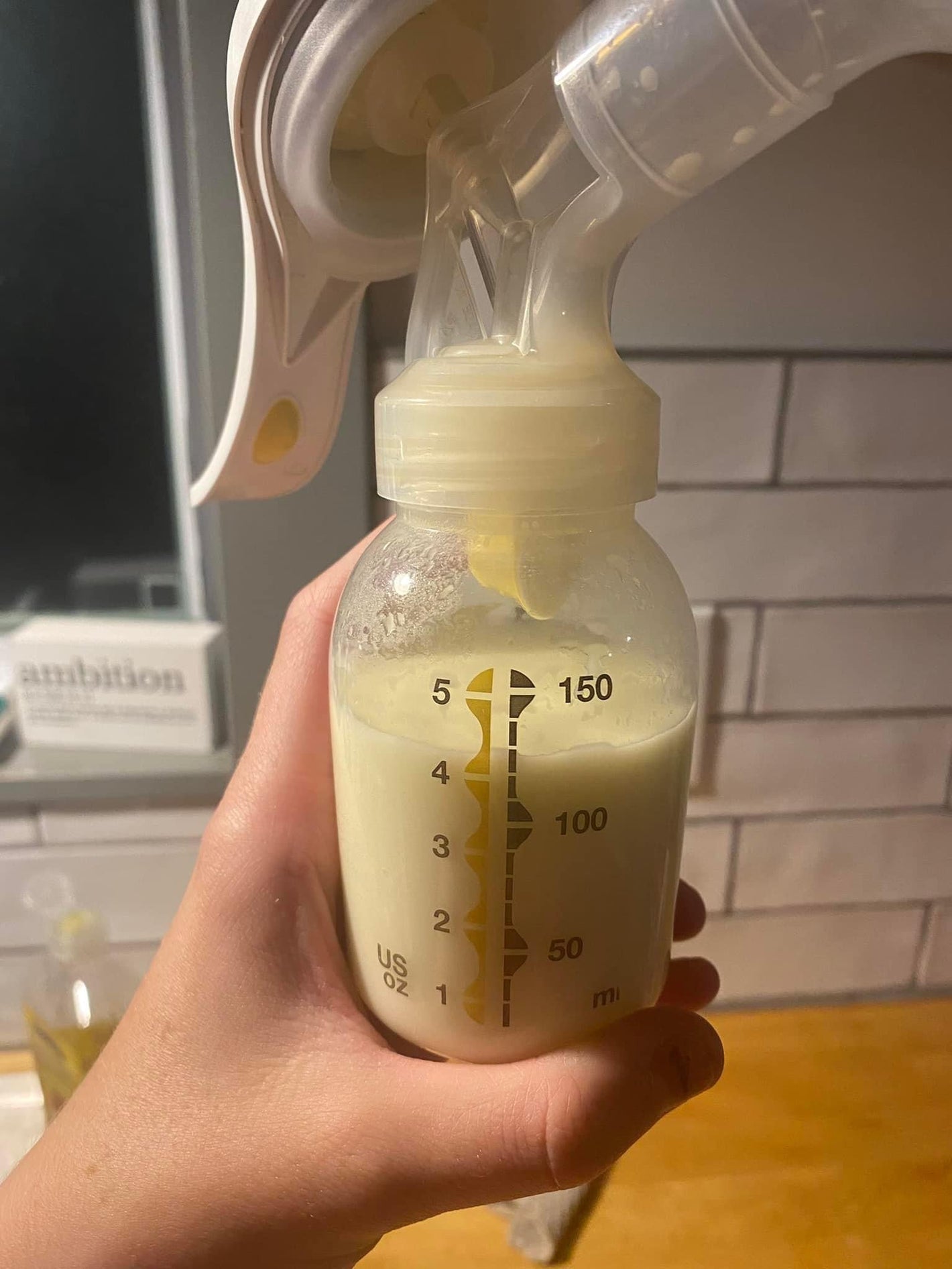 An hour later I felt full again, pumped that same side and got 4.5 ounces as pictured!!