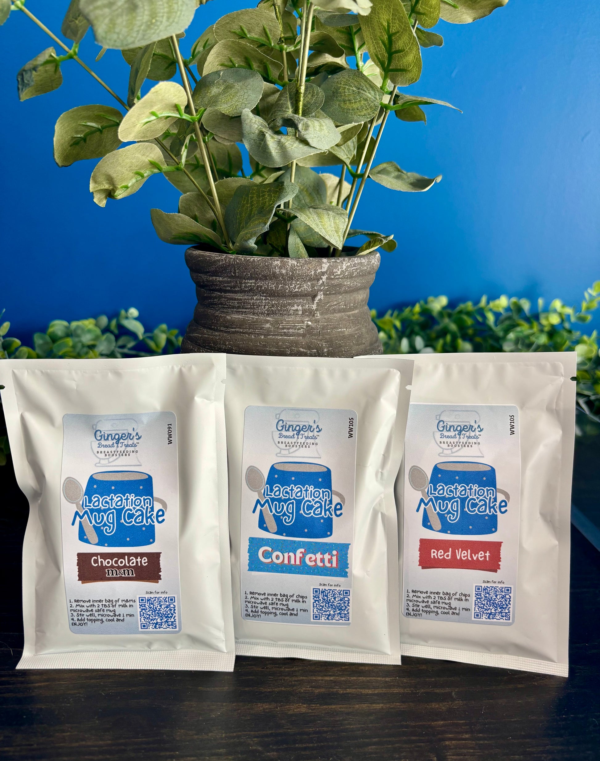 Quick and easy - the 1 minute fresh "baked" cake when you need that special treat just for yourself, each Mug Cake includes a topping packet to complete the treat! Made with Ginger's special Breastfeeding Booster Blend